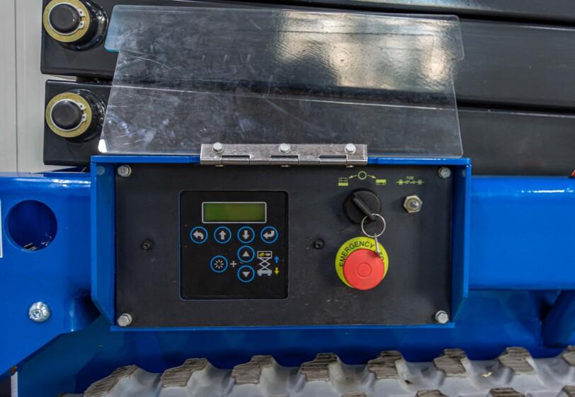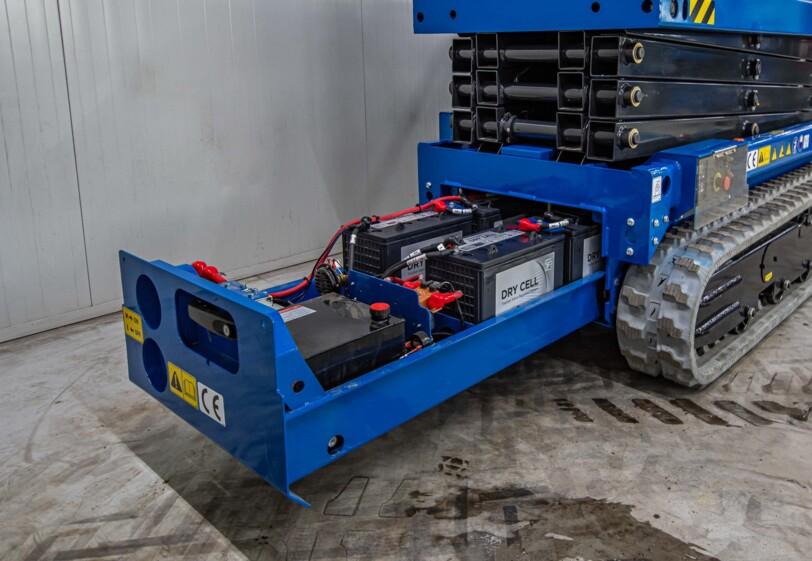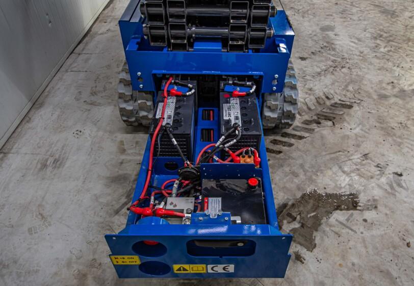 Volledig elektrische schaarhoogwerker met rupsaandrijving voor het werken op hoogte in vrijwel alle omstandigheden.