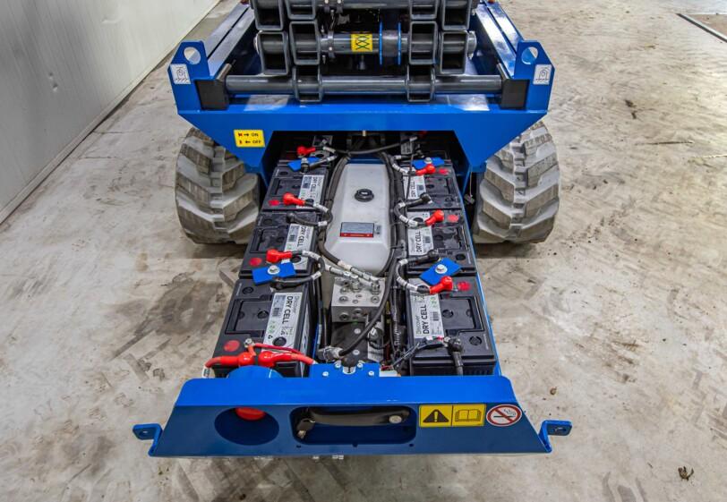 Robuuste schaarhoogwerker waarmee emissievrij kan worden gewerkt in ruw terrein, maar ook in gebouwen.